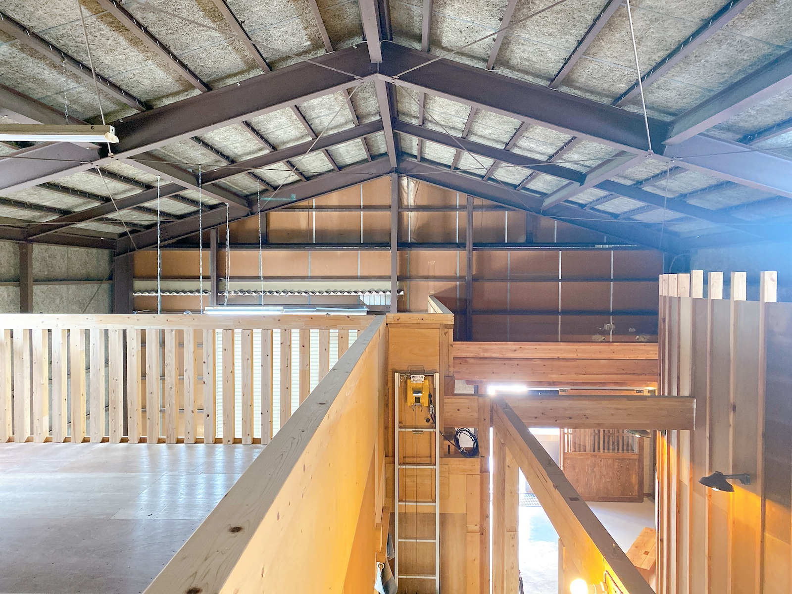 三角屋根に覆われた吹き抜けのある大空間。一番上は高さ6mくらいありそう。