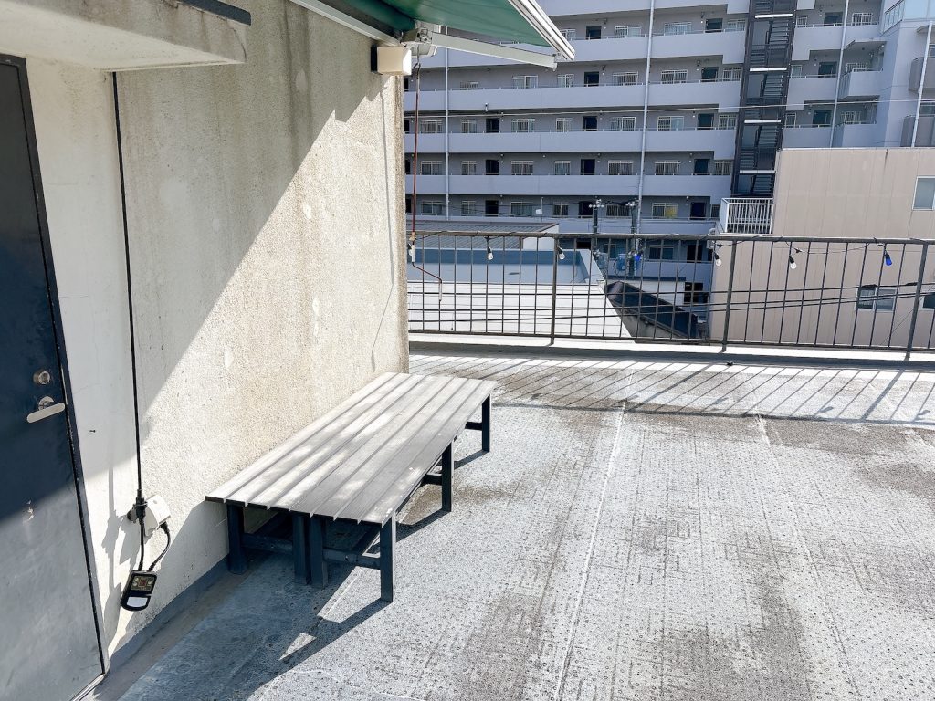 屋上ガーデン。都心の贅沢なスペース。休憩や交流の場として入居者さんに開放されています。パーティーやグランピング、たまにはレンタルスペースとして貸し出すことも。ロケ場所として使われたり……色んな利用の仕方があるものです。