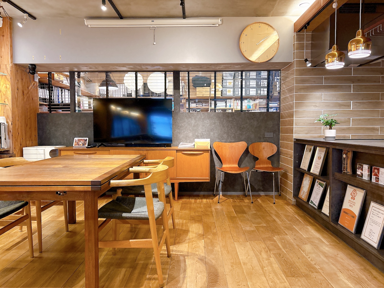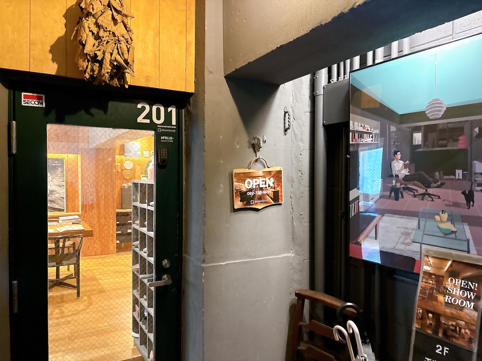 エレベーター無しの4階部分ですが、階段に変化があり洒落た照明やアート等が展示されていたりして、気がつけば4階まで上がっているという……これはデザイン会社(オーナー)ならではのトリック?