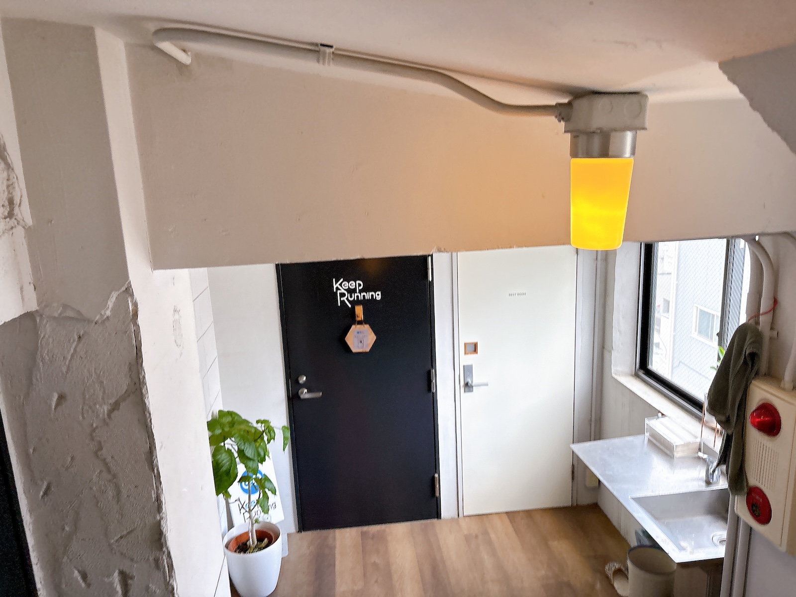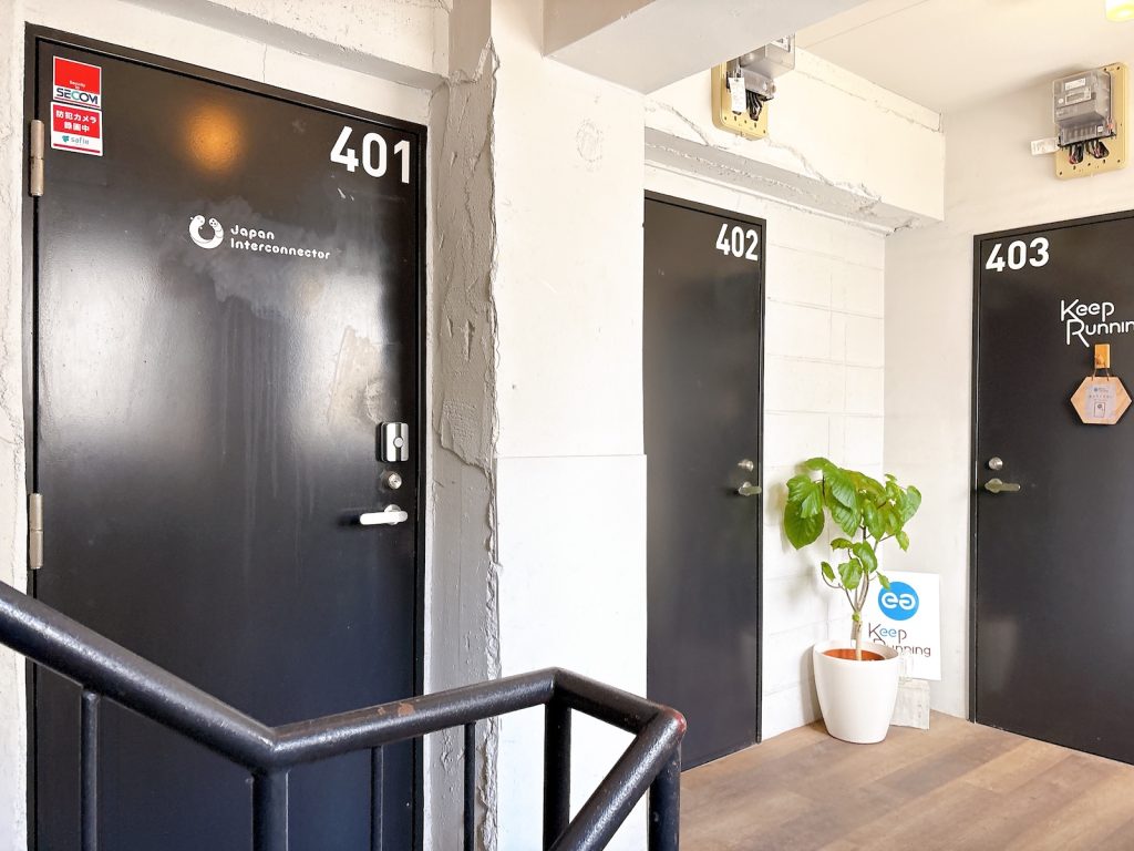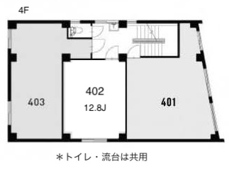 4階には貸室が3区画。同じフロアに(目の前に)共用の流し台やトイレがあって便利。