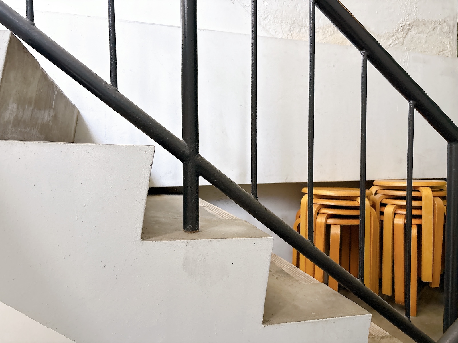 4階のすぐ上は屋上。階段の余白に積まれた椅子さえサマになる。