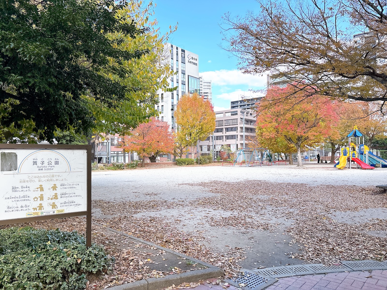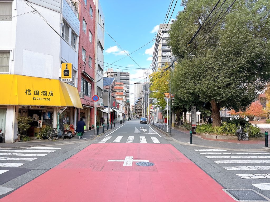大手門3丁目。ローカルなスーパーや飲食店が点在する下町のようなエリアです。簀子公園もすぐ近く。