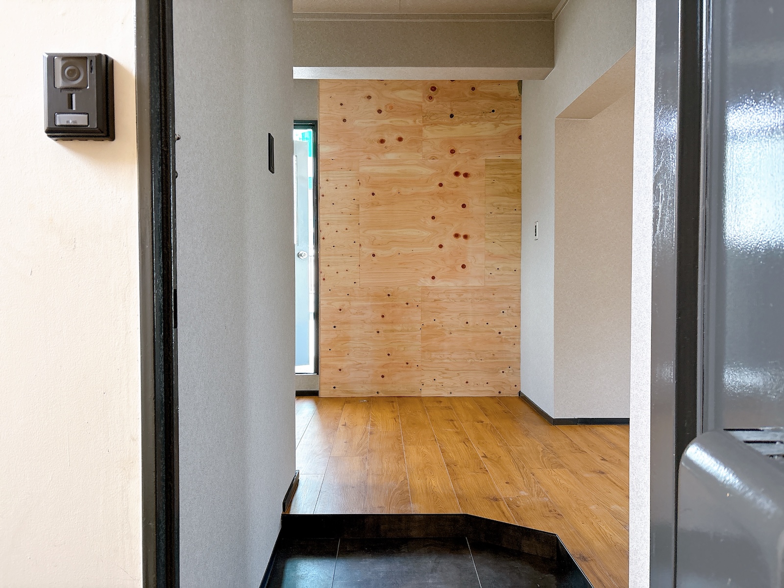 玄関ドアも改装済み。