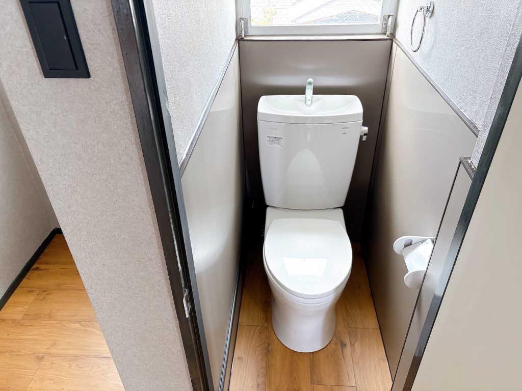 既存の白いドアの中にトイレ。