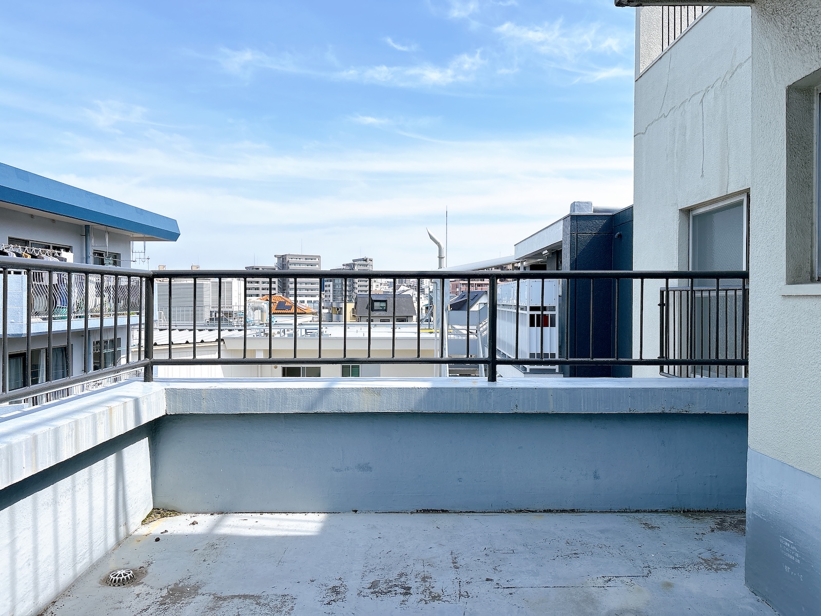 この方向の視界は抜けていますが、北側(左側)には同じ高さのマンションがあるので、こちら側には何か目隠しを設けても良いでしょう。