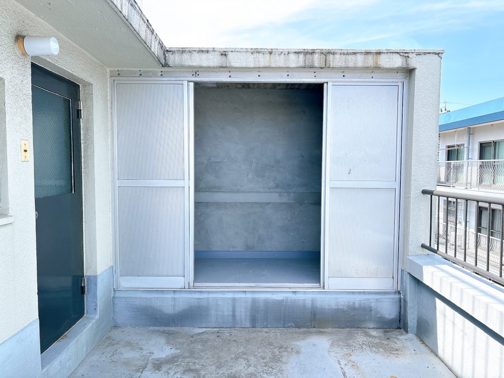 ルーフバルコニー&外部収納付き。