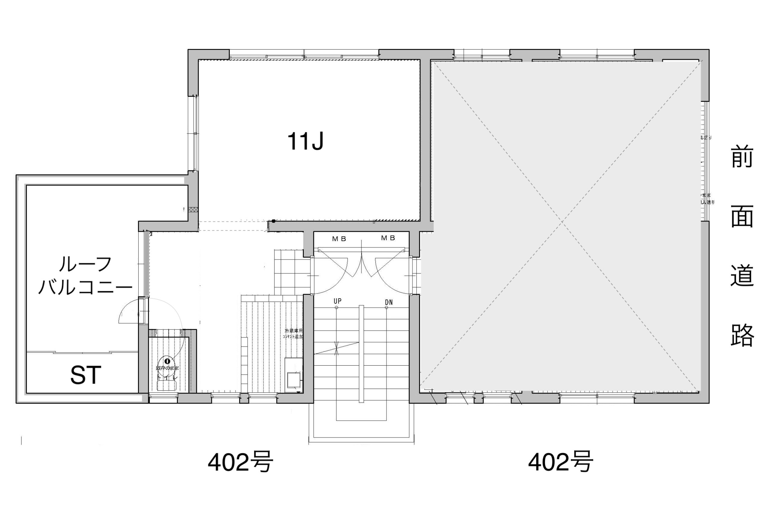 奥からルーフバルコニー側を見る。