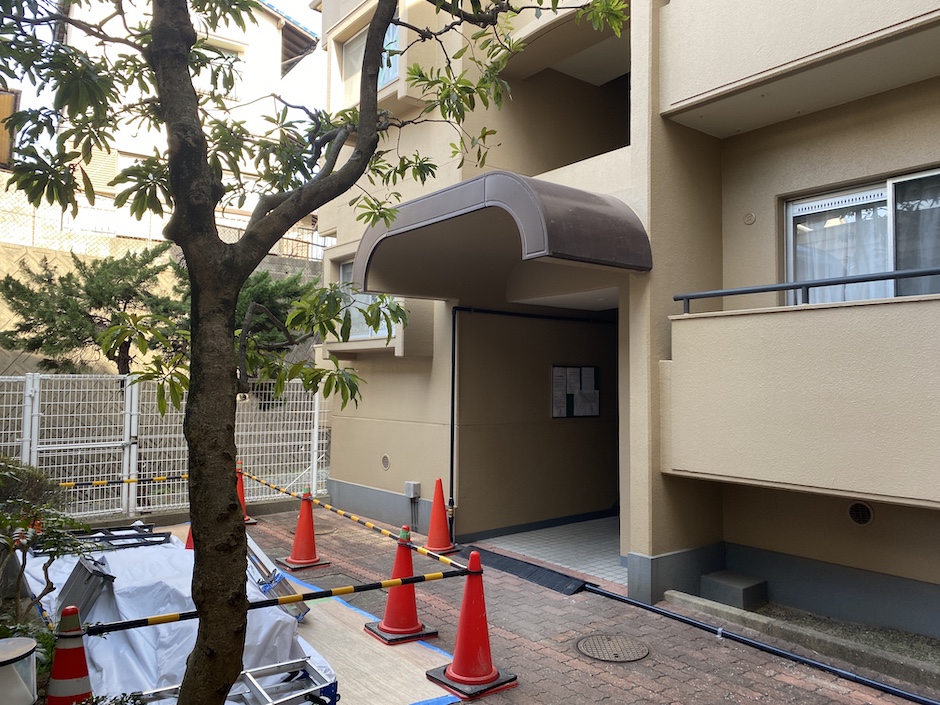 *現在、建物全体で給水管の工事が行われている模様