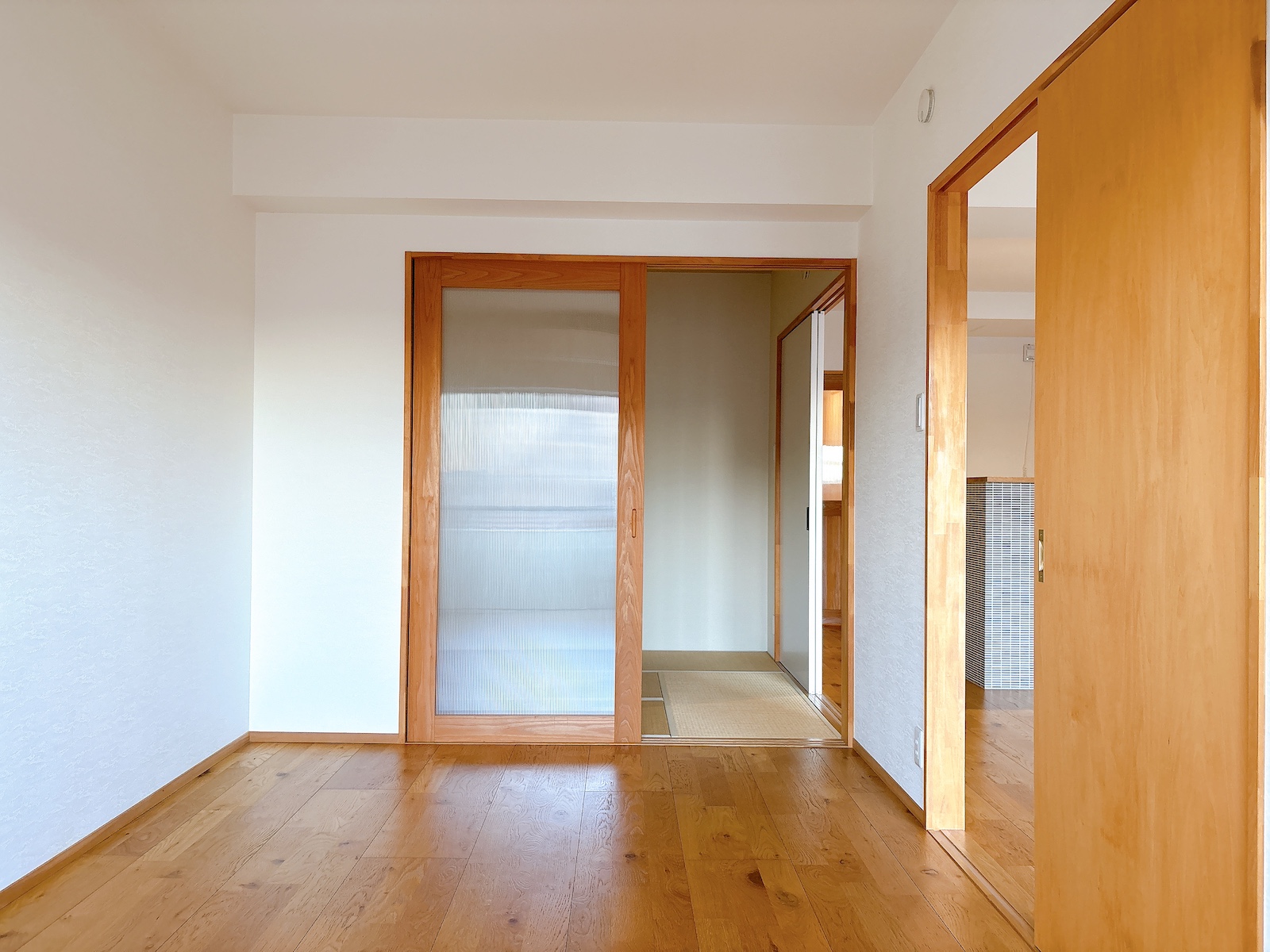 洋室2と和室の仕切りは透過性のあるポリカーボネートの引き戸。