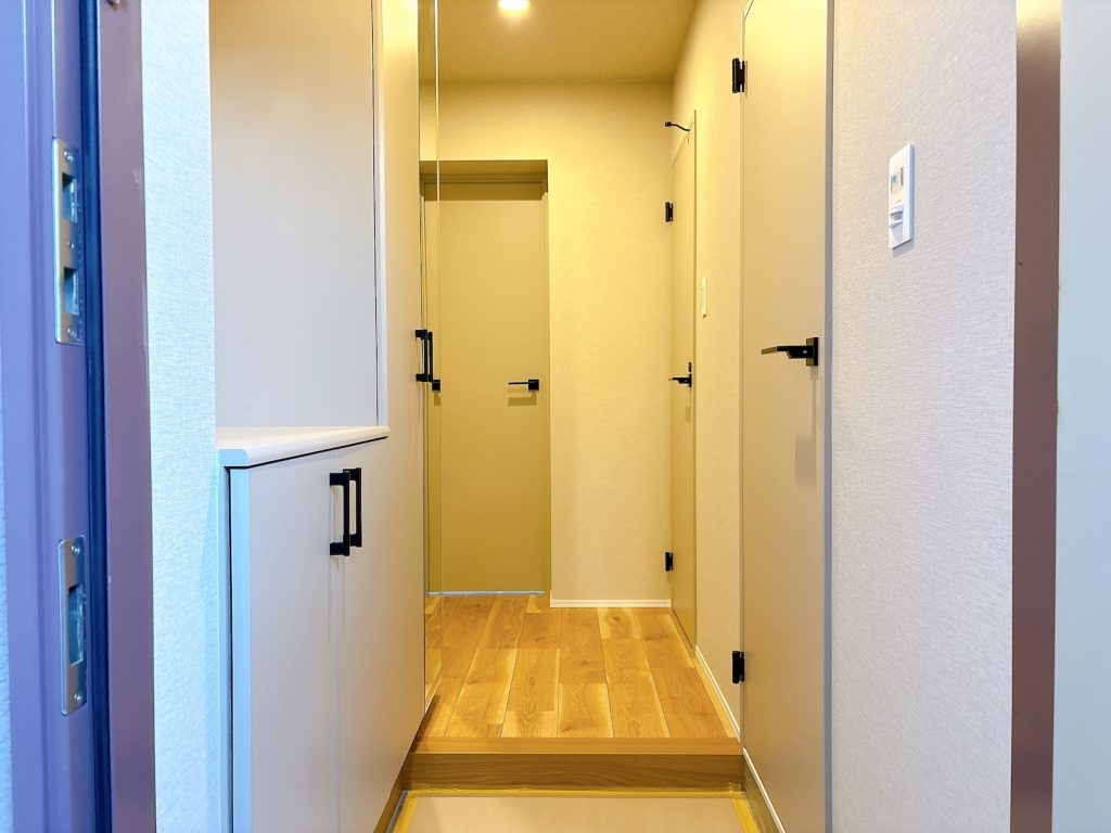 シューズボックスは腰高と天井まであるタイプのコンビネーション。なかなかの収納力。