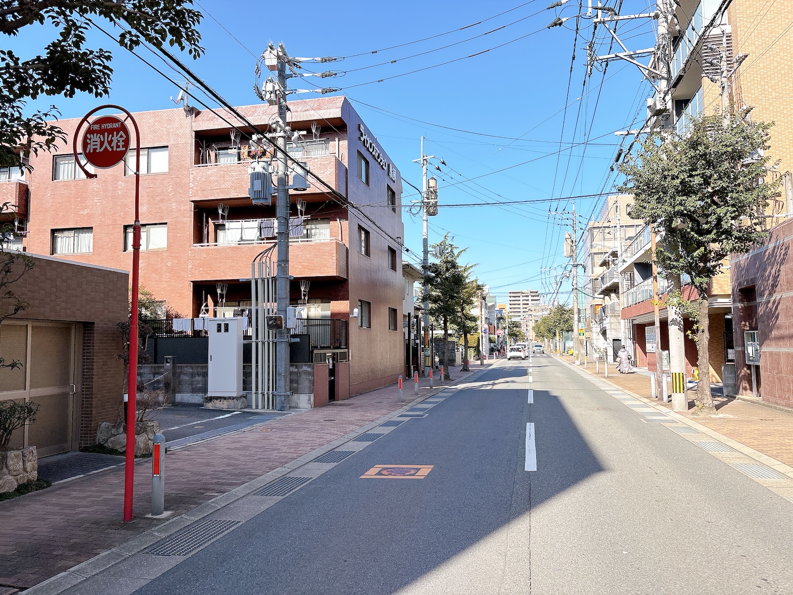 感じの良い並木道沿いに建っています。