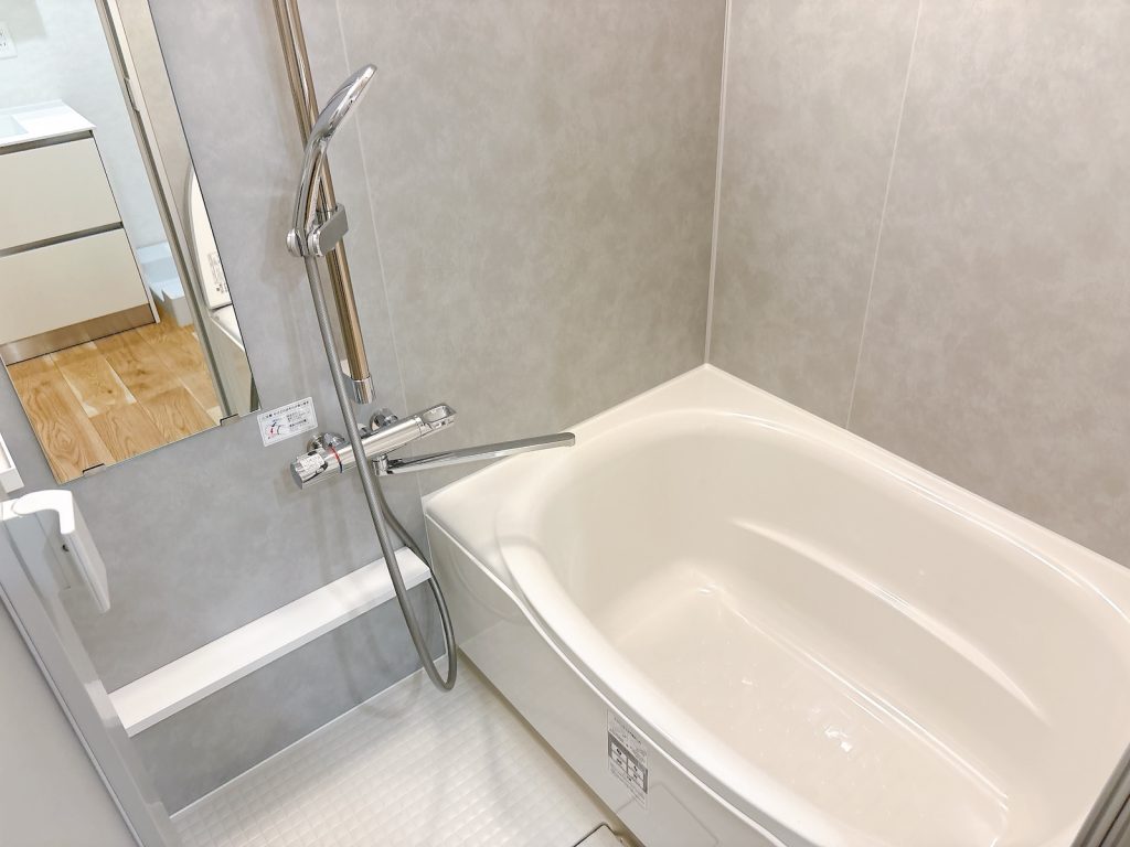 浴室は1216。浴室暖房乾燥機付き。給湯は電気温水器。容量370ℓなので二人暮らしには十分。沸き増し機能も付いています。