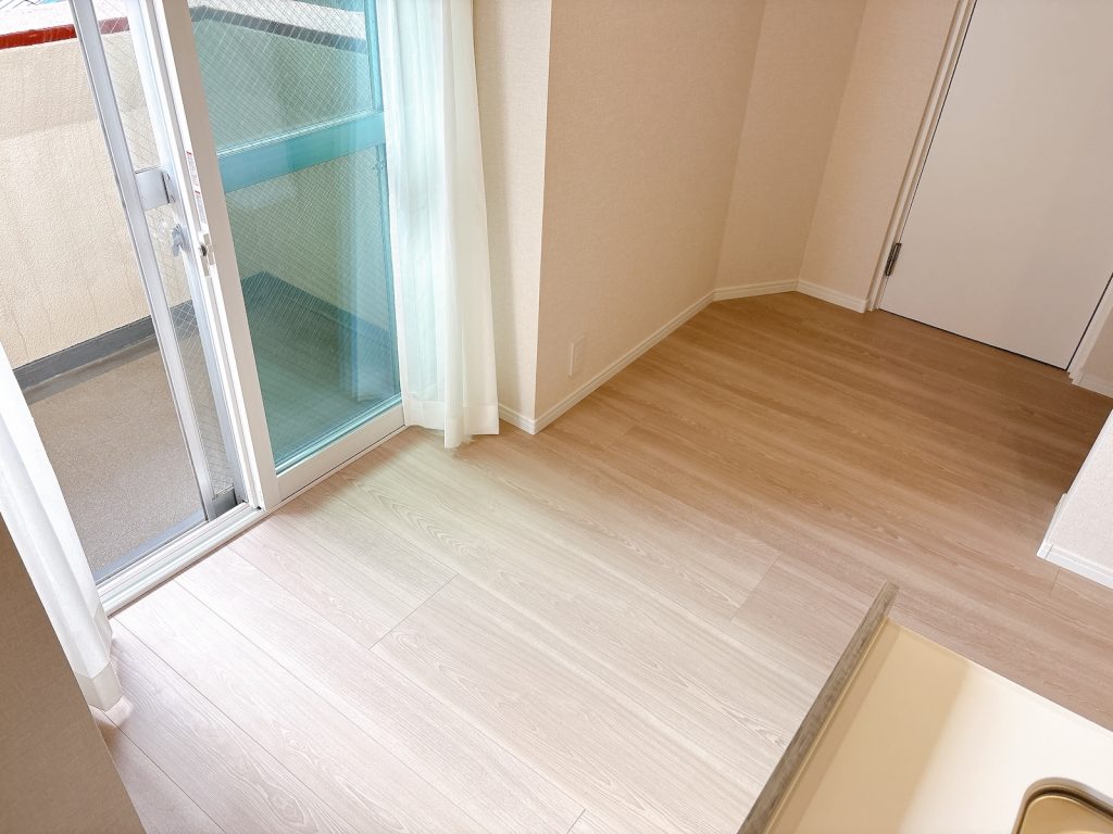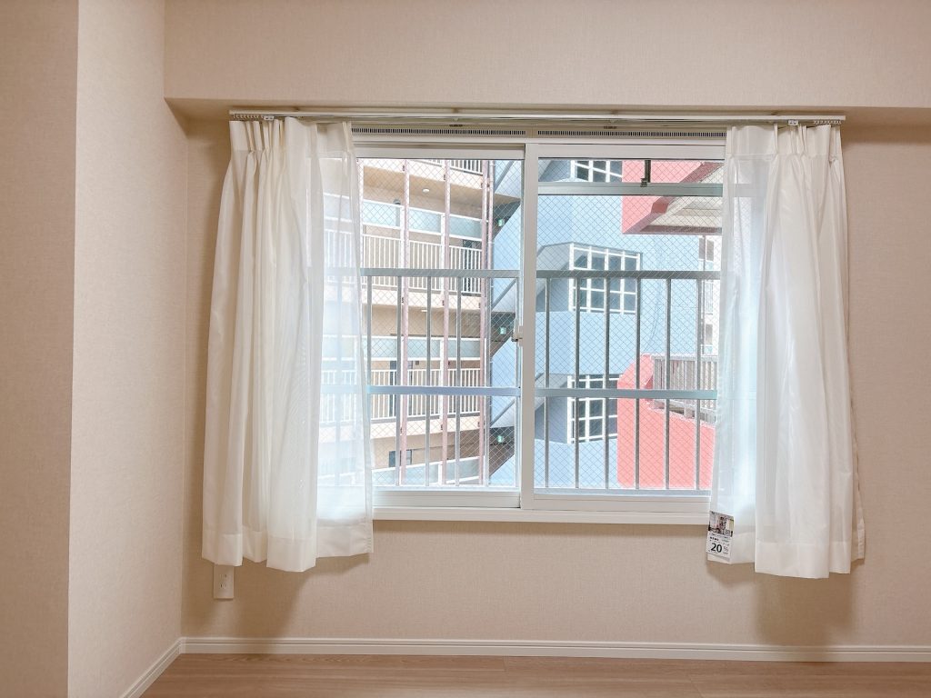 窓の向こうには隣のビルがあるので、ここはカーテン等で目隠しする生活に。