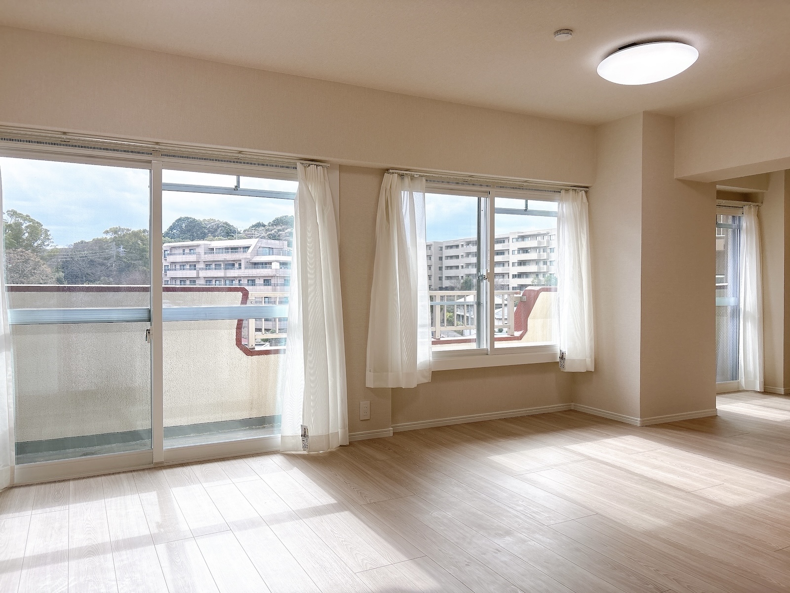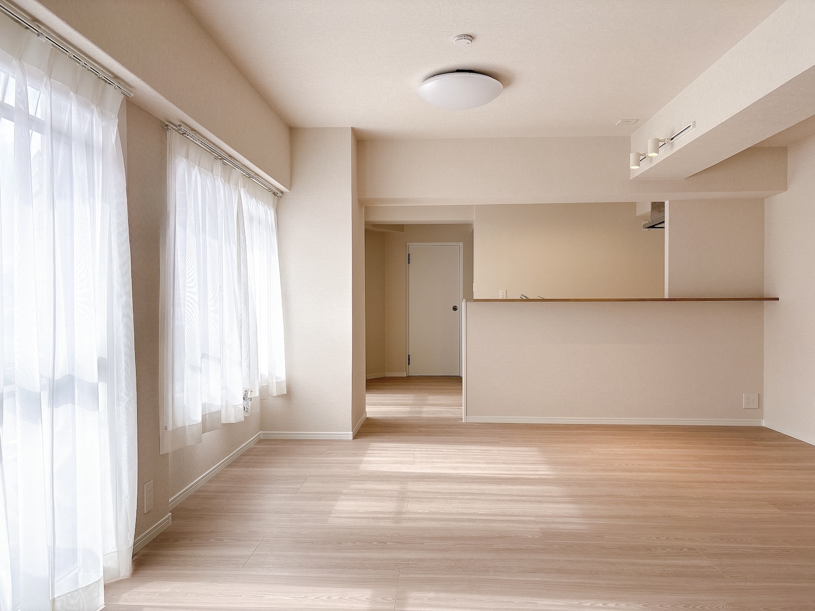 開放的なLDK。南に向かってワイドスパン。食卓や大型のソファーをゆったりと配置できます。