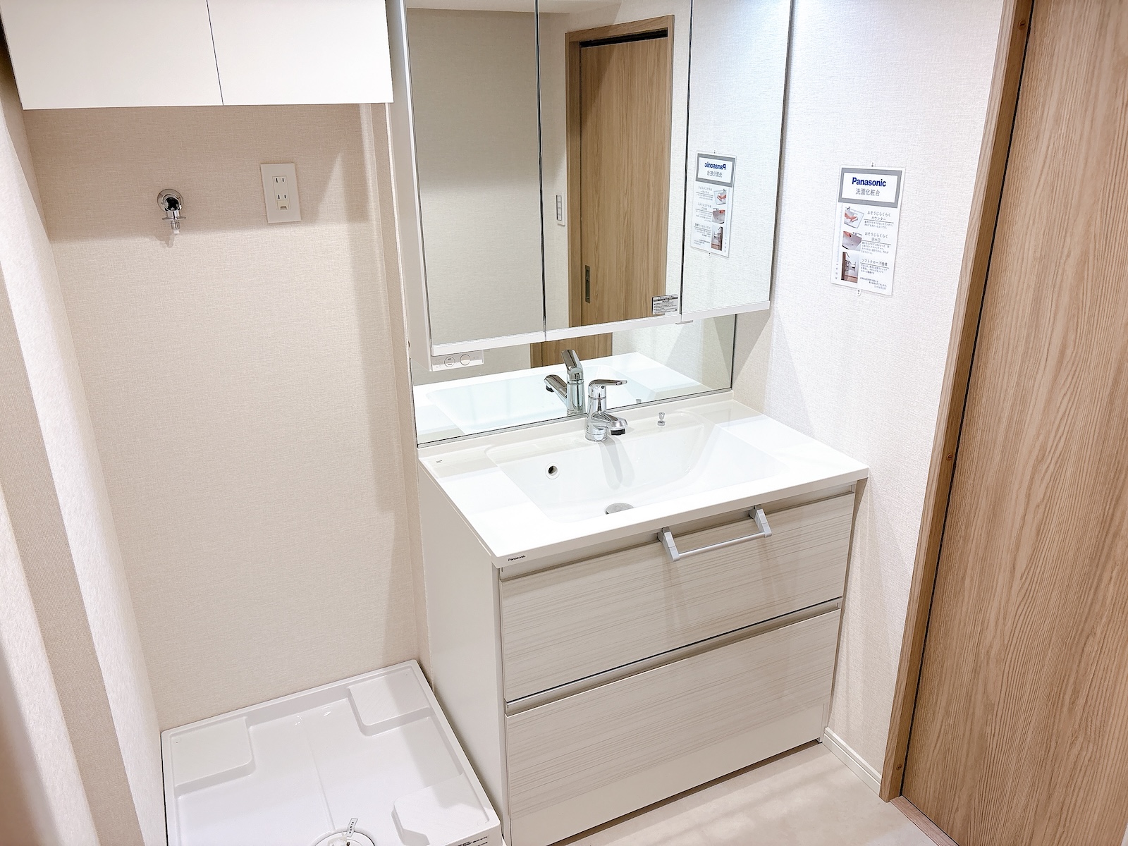 W900の洗面台。洗濯パンの上部にキャビネット付。