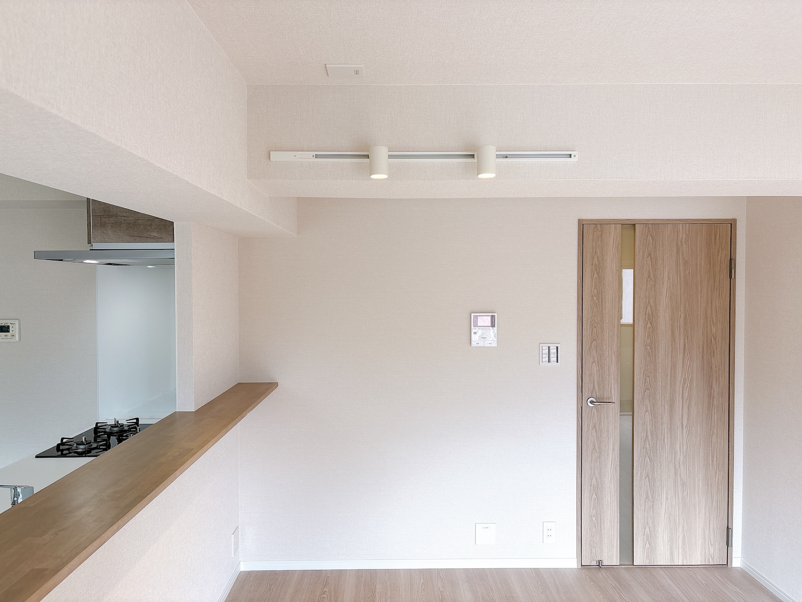 キッチン前面の天井には、ちょうど良い位置にライティングレール&照明が。